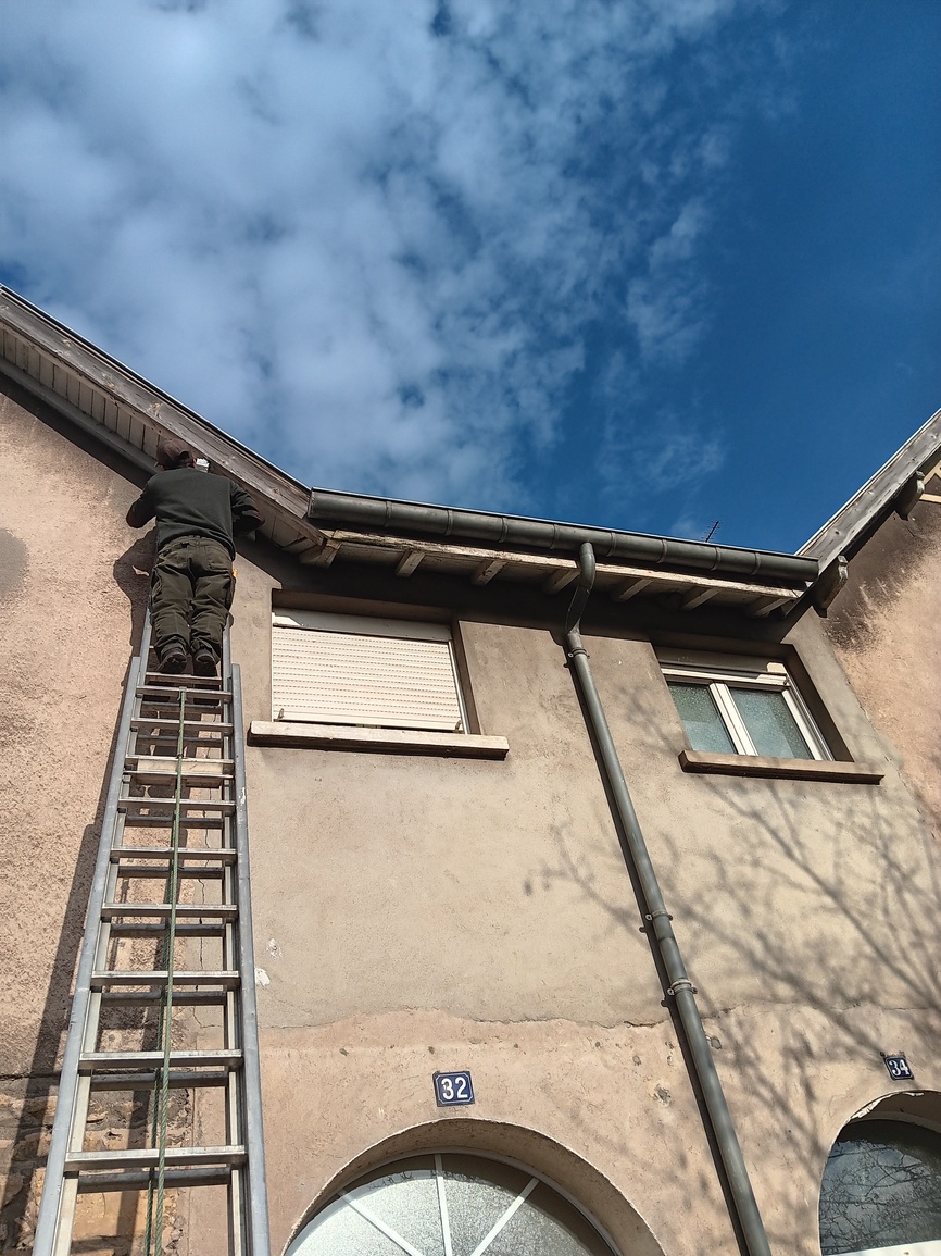 Démoussage à la brosse et réfection de faîtage Changement de tuile cassées, changement de faîtage et pose de closoirs ventilés ⇒Avant/Après